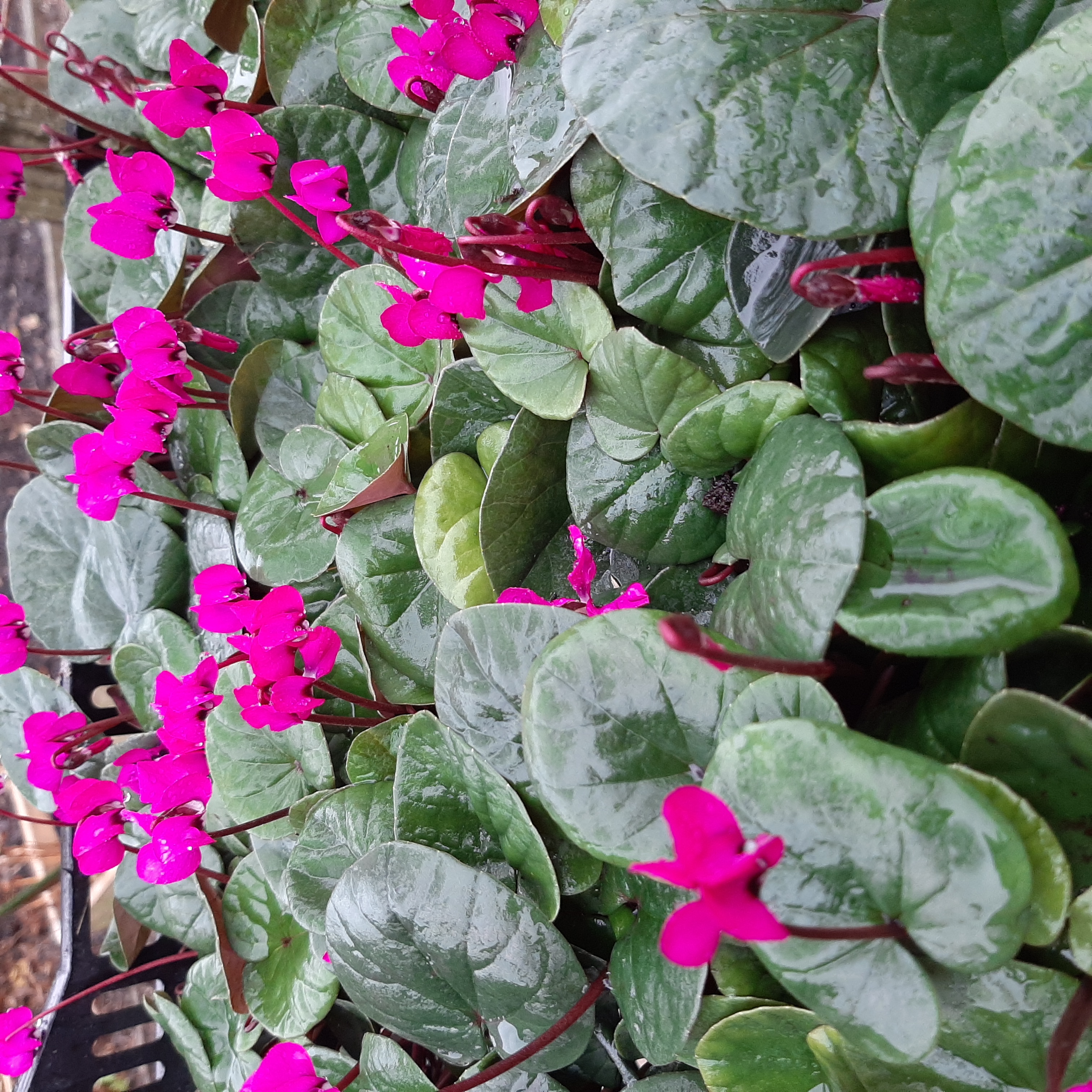 Il existe désormais des fleurs semi-doubles et doubles, ainsi que des variétés au feuillage remarquable. Les cyclamens rustiques sont étonnamment résistants. Cyclamen coum fleurit de décembre à avril avec des fleurs blanches, roses ou magenta et un feuillage magnifiquement décoré.